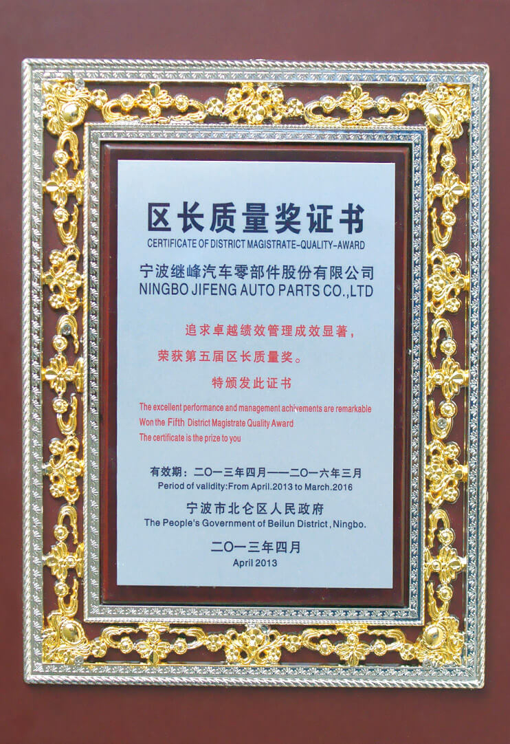 公司獲得北侖區(qū)“區(qū)長(zhǎng)質(zhì)量獎(jiǎng)”;