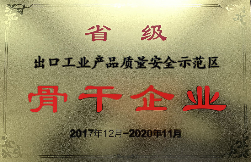 公司榮獲“省級(jí)出口工業(yè)產(chǎn)品質(zhì)量安全示范區(qū)骨干企業(yè)”榮譽(yù)稱號(hào);